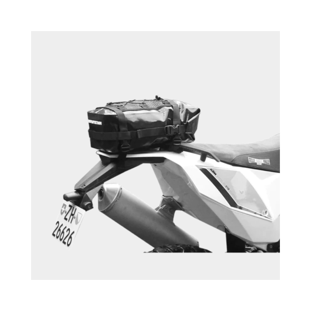 Extend the volume of your Monsoon Saddle Bags, Tornados or aluminum panniers by adding one or more XS 6.5 or XS 12 Base Packs.If you prefer to travel light, simply attach any XS Base Pack directly to the rear of your bike or alternatively your luggage rack. Stainless steel hardware is provided to bolt the mounting straps down to the fender of your sports enduro.