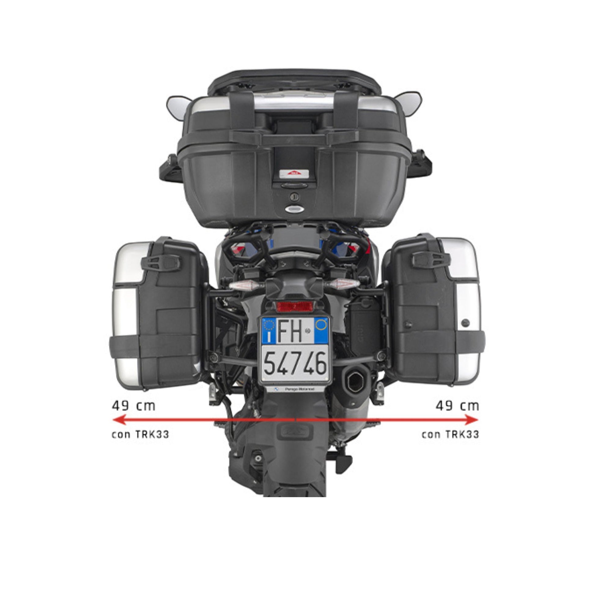 it can also be mounted with the original side-cases fitting system / 18 mm diameter / to be combined with 13RKIT for the transformation into Rapid Release pannier holder